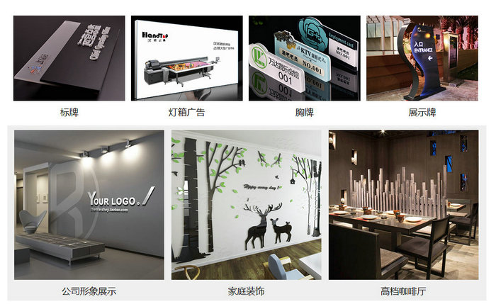 廣告加工行業是UV打印機一塊很大的市場。廣告加工產品如街頭橫幅廣告、門牌、標牌、燈箱、天花軟膜等等充斥在91视频地址入口生活周邊。用UV打印機製作這些產品已逐漸成為廣告加工業內人士的熱門選擇。