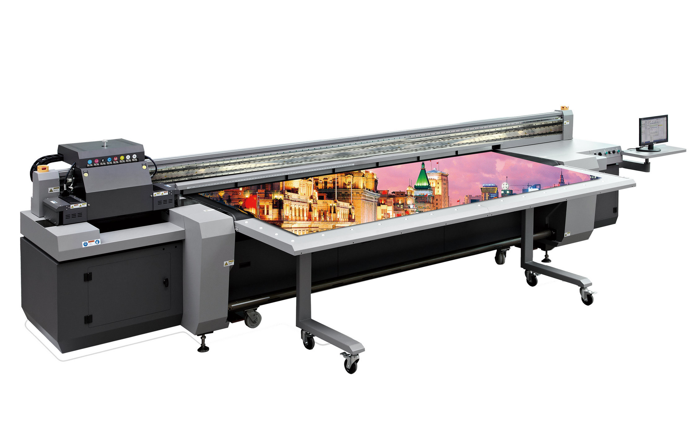 HT3200UV卷板一體UV打印機集高速、多功能於一體,一機兩用,具有較高的價值。如從事室內裝飾印刷牆高一般為2.5米,使用HT3200UV一次就能打印出一整麵牆的圖案,充分滿足不同的打印需求,節省人力和時間,提高打印效率。