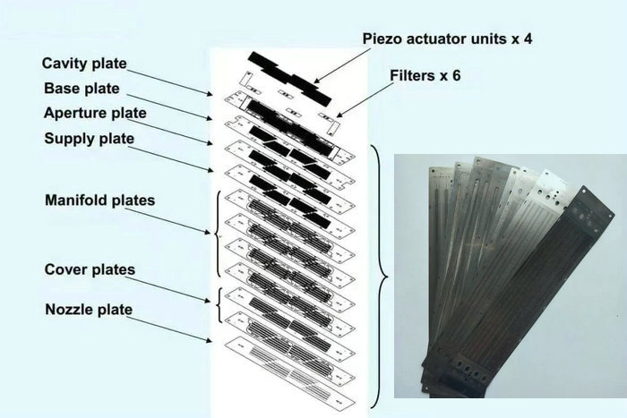 再次,京瓷噴頭采用不鏽鋼噴嘴麵板與金屬外殼,在嚴苛的工業使用環境中具備高可靠性。11層噴嘴片的精密結構,保證了打印精度和質量。能把結構做到這麽精密而且打印速度、精度在市場上也有相對優勢,這也是京瓷UV打印機噴頭的科技硬實力。