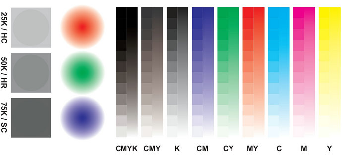 眾多的UV打印機廠家也在如何進一步提升噴墨打印精細度方向進行著孜孜不倦的研究。UV噴墨打印是以青色 (C) 洋紅色(M) 和黃色 (Y) 三原色減色法呈現顏色。CMY這三種油墨能混合出最多的顏色,而且色域最寬。而三原色並不能混合出真正的黑色,需要有專門的黑色(K),所以UV打印機常說的四色也就是CMYK。