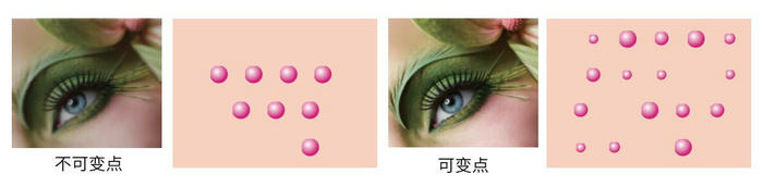 可變點技術按字麵理解就是墨滴的大小可變,首先帶來的直接效果就是節省UV平板打印機的油墨成本。其次,就是圖像的過渡處理了,早期針對圖像的過渡很多采用的是用淺色係的油墨打印需要過渡的區域,而有了可變點技術後,用小墨滴打印過渡區域,即使沒有淺色油墨,也可以使打印的圖像效果更加細膩。