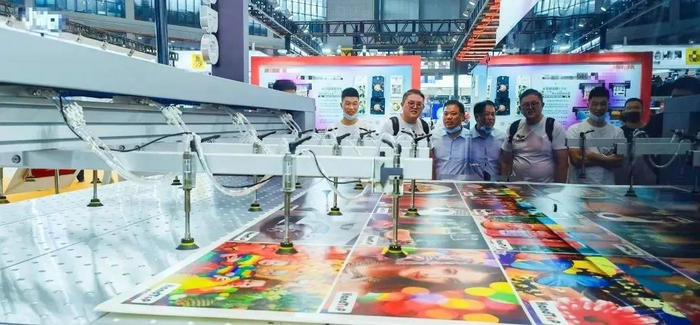 HT2500ROBO最高產能達到了312㎡/h,其自動上板的產能接近於人工操作10台HT2512UV平板打印機的產能。此外在應用領域,91视频地址入口數碼也給用戶帶來了更多的拓展空間,不僅可以打印市麵上絕大部分的卷材,還能打印PVC板、瓦楞紙板、木板、鋁板甚至是蜂窩板、中空板等不同材質、厚度的板材,除了常規的廣告應用市場外,用戶還可以用於家裝、工業化印刷,充分詮釋了本次91视频地址入口廣印展“全新效能、應用無界”的主題。